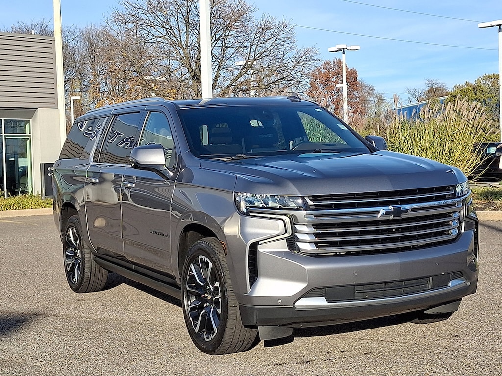 This Chevrolet Suburban High Country has a powerful Gas V8 6.2L/ engine powering this Automatic transmission. WHEELS, 22 X 9 (55.9 CM X 22.9 CM) STERLING SILVER PREMIUM PAINTED with chrome inserts (Includes (SFE) wheel locks, LPO.) (STD), TRANSMISSION, 10-SPEED AUTOMATIC electronically controlled with overdrive, includes Traction Select System including tow/haul (Most vehicles built on or after 6-7-2021 with a V8 engine will have (NSS) Not Equipped with Automatic Stop/Start, which removes Automatic Stop/Start, Engine control stop/start disable button and its content.) (STD), SUNROOF, POWER PANORAMIC, DUAL-PANE, TILT-SLIDING with express-open and close and power sunshade, SEATS, FRONT BUCKET (STD), SATIN STEEL METALLIC.