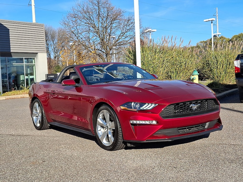 This Ford Mustang Premium Convertible has a strong Intercooled Turbo Premium Unleaded I-4 2.3 L/140 engine powering this Automatic transmission. KBB.com Brand Image Awards. WHEELS: 19 X 8.5 POLISHED ALUMINUM -inc: Tires: 19, VOICE-ACTIVATED TOUCH-SCREEN NAVIGATION SYSTEM -inc: pinch-to-zoom capability, SiriusXM Traffic and Travel Link w/a 5-year prepaid subscription, SiriusXM audio and data services each require a subscription sold separately, or as a package, by SiriusXM Radio Inc, If you decide to continue service after your trial, the subscription plan you choose will automatically renew thereafter and you will be charged according to your chosen payment method at then-current rates, Fees and taxes apply, To cancel you must call SiriusXM at 1-866-635-2349, See SiriusXM Customer Agreement for complete terms at www.siriusxm.com, All fees and programming subject to change, Sirius, XM and all related marks and logos are trademarks of Sirius XM Radio Inc, TRANSMISSION: 10-SPEED AUTOMATIC W/SELECTSHIFT -inc: steering wheel paddle shifters, Leather-Wrapped Shift Knob, Remote Start System, SAFE & SMART PACKAGE -inc: Blind Spot Info System w/Cross-Traffic Alert, Automatic High Beam, Rain-Sensing Windshield Wipers, Adaptive Cruise Control, Pre-Collision Assist w/Pedestrian Detection, automatic emergency braking and forward collision warning w/brake support, Memory Driver Seat, Mirrors & Ambient Lighting, 3 settings, Lane Keeping Alert, RUBY RED METALLIC TINTED CLEARCOAT.
