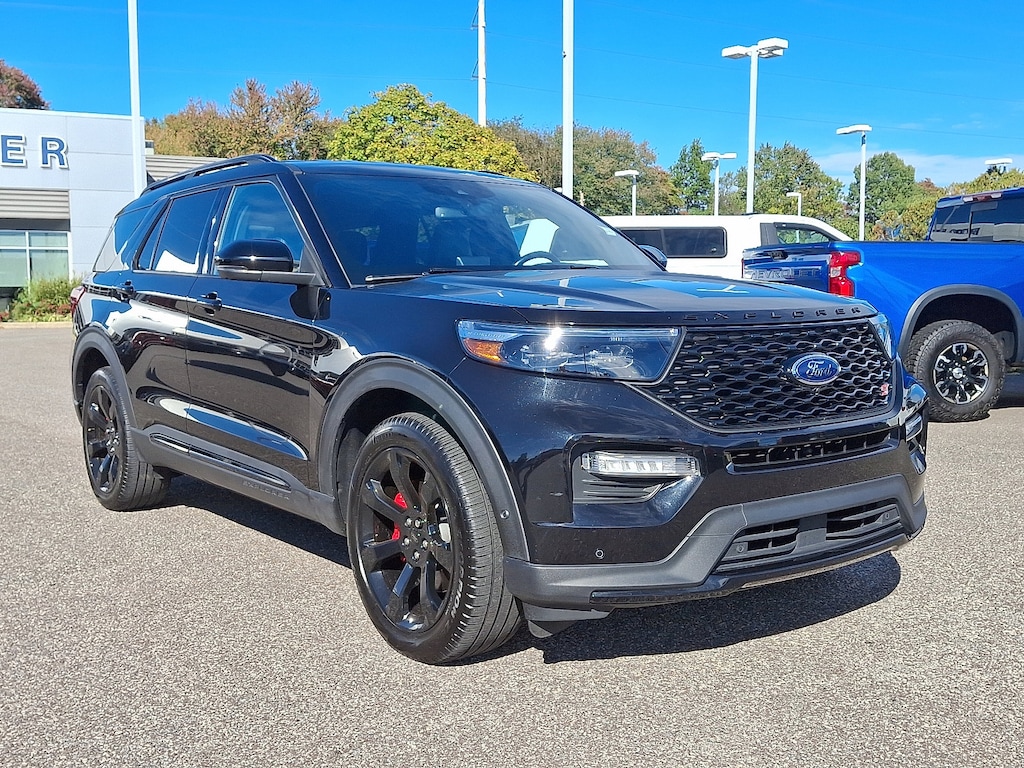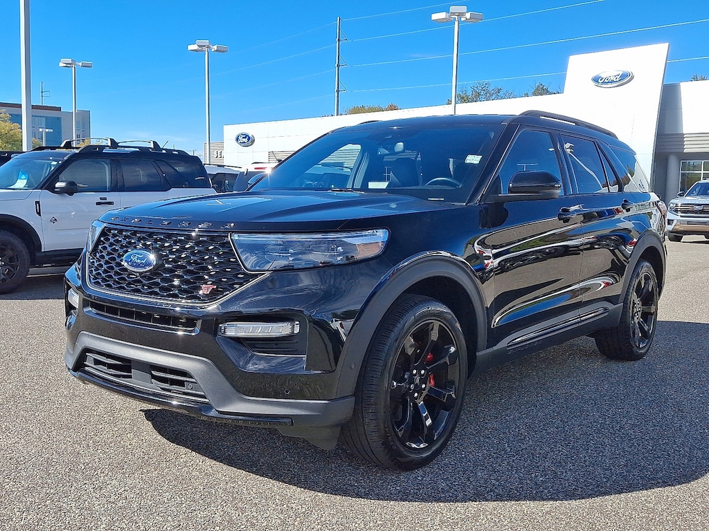 This Ford Explorer ST 4WD has a strong Twin Turbo Premium Unleaded V-6 3.0 L/183 engine powering this Automatic transmission. WHEELS: 21 ALUMINUM -inc: Tires: P275/45R21 AS BSW, ST STREET PACK -inc: Wheels: 21 Aluminum, Tires: P275/45R21 AS BSW, Performance Front & Rear Brakes, red painted brake calipers, EQUIPMENT GROUP 400A, ENGINE: 3.0L ECOBOOST V6 -inc: auto start-stop technology (STD), EBONY, LEATHER HTD/VENTILATED SPORT CAPTAIN'S CHAIRS -inc: micro perforation and city silver accent stitching and ST logo, 10-way power driver's seat w/power lumbar, recline and memory, 10-way power front passenger seat w/power lumbar and power recline and 4-way manually adjustable driver and front passenger head restraints (2-way up/down when dual-headrest rear seat entertainment system (50S) is ordered).