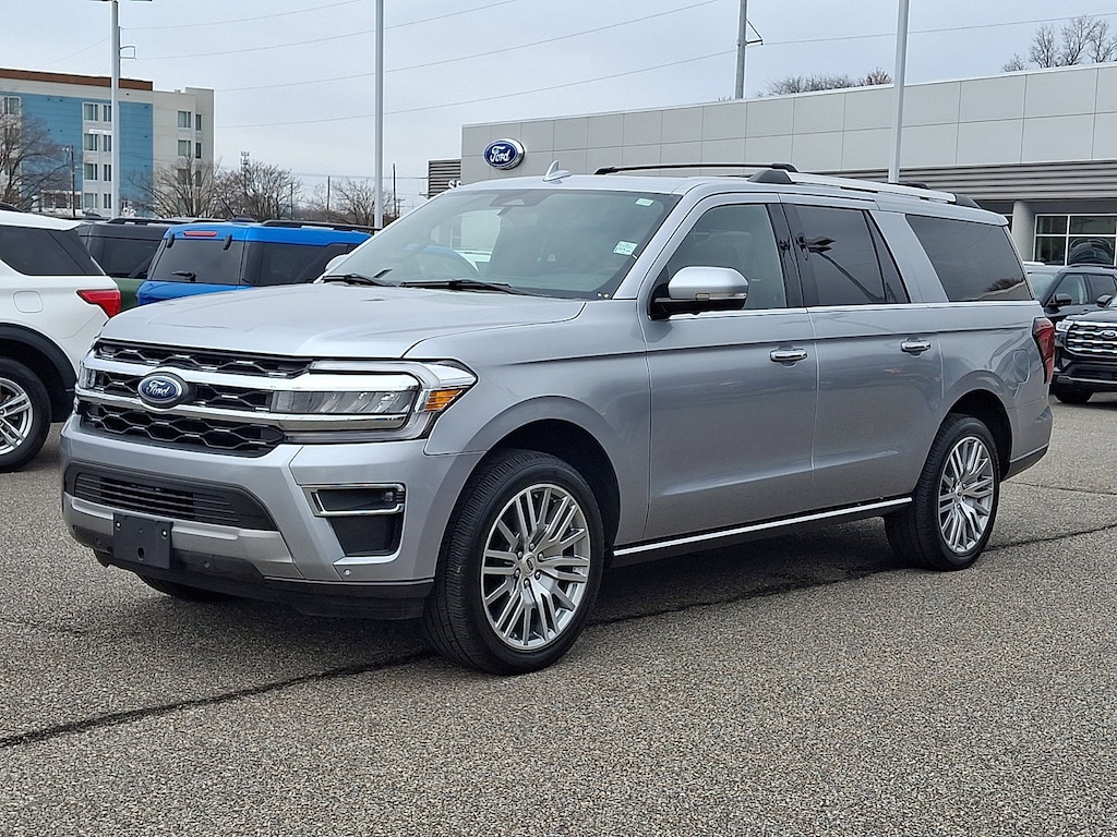 This Ford Expedition Max Limited 4x4 has a powerful Twin Turbo Premium Unleaded V-6 3.5 L/213 engine powering this Automatic transmission. WHEELS: 22 12-SPOKE POLISHED ALUMINUM, MAHOGANY, HEATED & VENTILATED LEATHER FRONT CAPTAIN'S CHAIRS -inc: 7-passenger seating, 10-way power driver w/memory (power function for tilt, lumbar and recline), 8-way power passenger seats (power function for lumbar and recline) and 2-way manually adjustable head restraints, ICONIC SILVER METALLIC, EQUIPMENT GROUP 302A HIGH PACKAGE -inc: Ebony Black Mesh Grille, bright chrome bars and chrome inserts, Power-Folding Sideview Mirrors w/Autofold, power and heated glass, turn signal indicators, security approach lamps, driver/passenger side memory, driver's side auto-dimming and body-color caps, Ford Co-Pilot360 Assist 2.0, Connected Navigation, 1 year of connectivity, pinch-to-zoom capability, live traffic, predictive destinations and route guidance, Reverse Brake Assist, 360-Degree Camera w/Split View, front/rear washer, Wheels: 22 12-Spoke Polished Aluminum, Magnetic-Painted Power Deployable Running Boards, polished stainless accent, Heavy-Duty Independent Suspension, Tires: P285/45R22 110H AS BSW, ENGINE: 3.5L ECOBOOST V6 (STD).