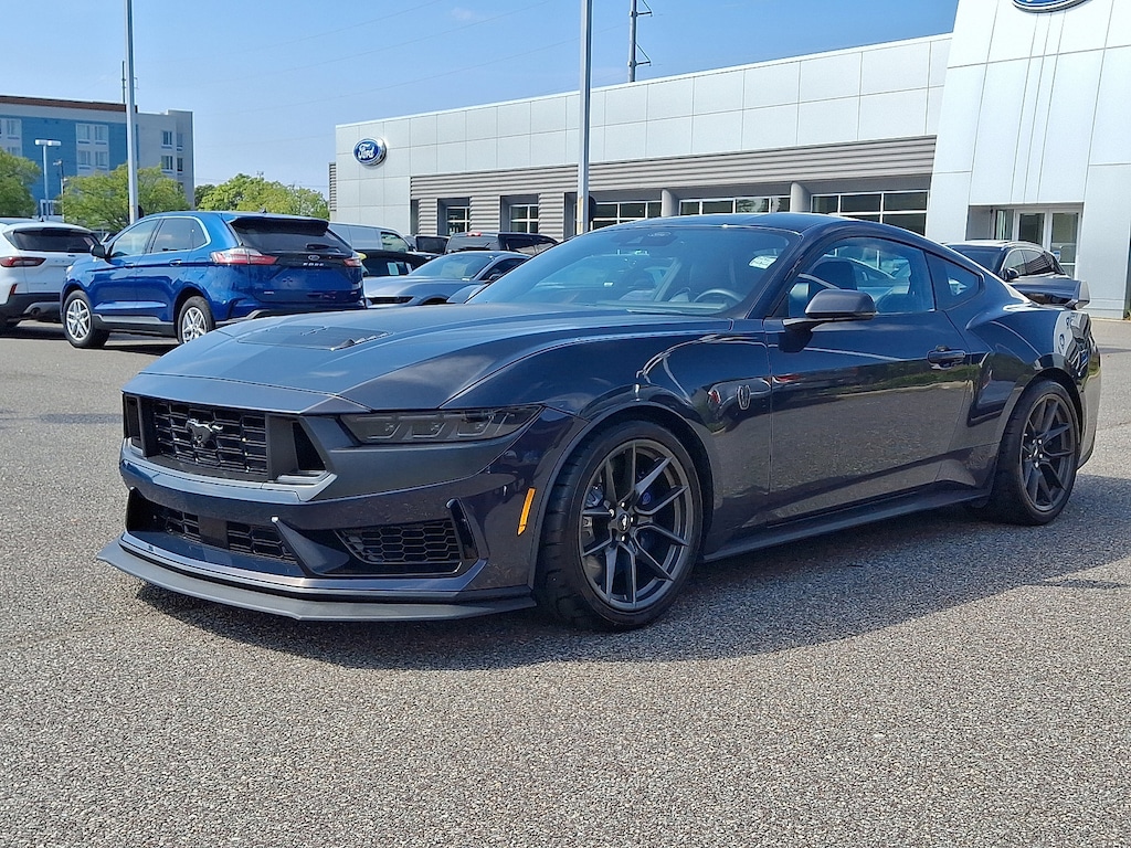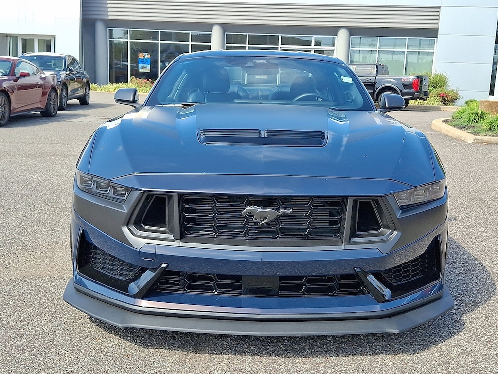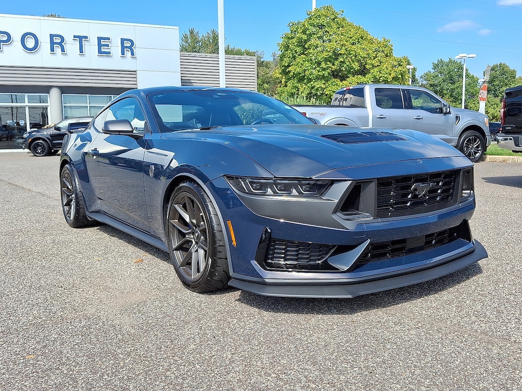 This Ford Mustang Dark Horse has a powerful Premium Unleaded V-8 5.0 L/302 engine powering this Manual transmission. TARNISH DARK HIGH GLOSS/SHADOW BLACK HOOD STRIPE, SECURITY PACKAGE -inc: Active Anti-Theft System, Electronic-Locking Center Console, Wheel Locking Kit, EQUIPMENT GROUP 700A DELUXE PACKAGE -inc: Premier Trim w/Color Accent Group, accent stitched center console lid, wrapped knee bolsters w/accent stitch and shifter boot, l and unique color-accented door-trim, Security Package, Active Anti-Theft System, Electronic-Locking Center Console, Wheel Locking Kit, Approach Detection, welcome/farewell exterior lighting, Universal Garage Door Opener (UGDO), Memory Driver Seat & Mirrors, 3 settings, Aluminum Foot Pedals, ENGINE: MOD 5.0L-4V DOHC EFI NA (STD), DARK HORSE HANDLING PACKAGE -inc: adjustable strut top mounts (installed at plant) and revised chassis tuning, Magnetic Damping System, Performance Rear Spoiler w/Gurney Flap, Painted shadow black, Wheels: 19 x 10.5 Fr/19 x 11 Rr Tarnished Alum, Dark-painted low gloss, Tires: 305/30R19 Front & 315/30R19 Rear, Front Towing Hooks, Performance Front Aero Splitter, Placed in vehicle for installation post-sale.