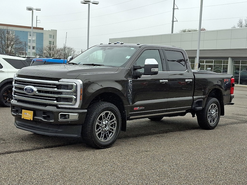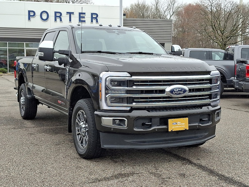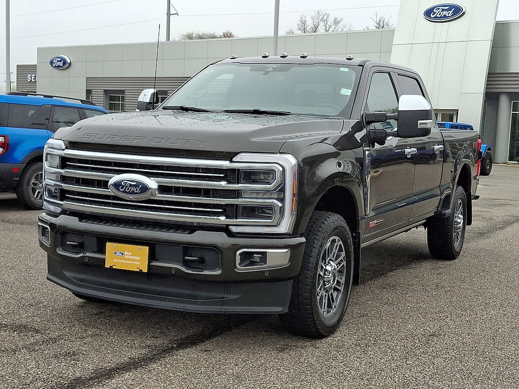 This Ford Super Duty F-350 SRW Platinum Crew Cab 4x4 has a powerful Intercooled Turbo Diesel V-8 6.7 L/406 engine powering this Automatic transmission. Only 9,530 Miles! Dealer Certified Pre-Owned. PLATINUM PLUS PACKAGE -inc: satin chrome tailgate applique, front premium suede wrapped pillars, front premium leather interior grab handles and upgraded floor mat accents matching premium interior theme, Platinum Plus experience includes premium maintenance plan - coverage up to 2 years or 25,000 miles (whichever comes first), Covers routine inspections, preventive care, and replacement of normal wear and tear items that require periodic attention, elite welcome call, welcome package and tribute item, accessories discount (90 day window), FordPass rewards upgrade tier and 1:1 texting w/Ford truck expert, Premium Venetian Leather Door Panel, applied French stitching, Upfitter Switches (6), Located in overhead console, Illuminated Scuff Plates, Premium Leather IP Topper, upgraded Microwelt application, Twin Panel Power Moonroof, map lights and moonroof switches, Satin Chrome Door Handles, Unique Split Center Console Armrest, premium wood insert along w/Venetian leather wrapped armrest, ORDER CODE 713A -inc: 410 Amp Dual Alternators, 250 Amp + 160 Amp, LED ROOF CLEARANCE LIGHTS.