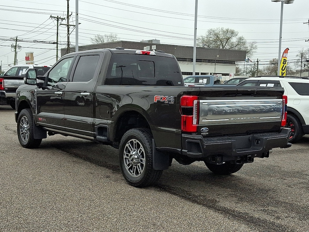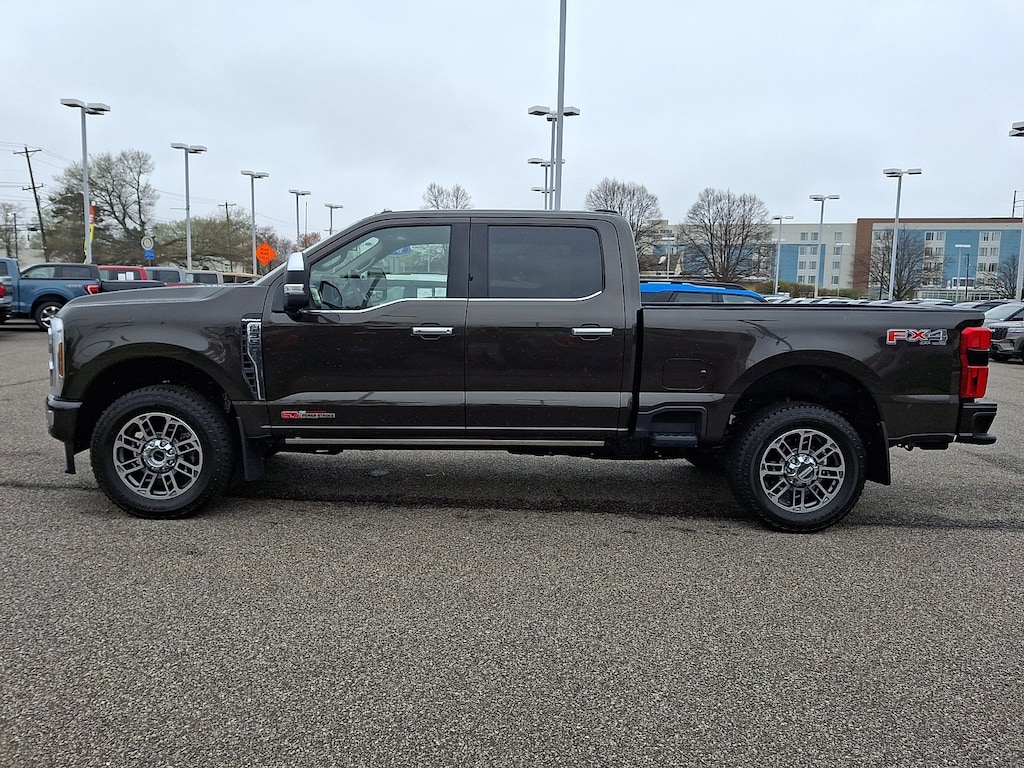 FX4 OFF-ROAD PACKAGE -inc: Hill Descent Control, Off-Road Specifically Tuned Shock Absorbers, front/rear, Transfer Case & Fuel Tank Skid Plates, Unique FX4 Off-Road Box Decal, ENGINE: 6.7L HIGH OUTPUT POWER STROKE V8 DIESEL -inc: Turbo diesel B20, manual push-button engine-exhaust braking and Operator Commanded Regeneration (OCR), 250 Amp Alternator, 34 Gallon Fuel Tank, GVWR: 12,000 lb Payload Package, 3.31 Axle Ratio, Dual 68 AH AGM 750 CCA Batteries, 5TH WHEEL/GOOSENECK HITCH PREP PACKAGE -inc: 5 pickup bed attachment points w/plugs, 1 frame under-bed cross member and 1 integrated 7-pin connector on driver's side pickup bed wall, 5th wheel hitch compatibility: the 5th Wheel/Gooseneck Prep Package (53W) is compatible w/the factory orderable 5th Wheel Hitch Kits (15K and 15L) and dealer-installed Ford accessories 5th Wheel Hitch Kit by Reese - part #BC3Z-19D520-A (8ft box only), The prep package is also compatible w/Reese Signature Series 5th wheel hitch kits updated w/a new Leg Service Kit - part #BC3Z-A00A25-A (8ft box only), The 5th Wheel Hitch Kit (15K), 5th Wheel Hitch Kit (15L) and dealer-installed Ford accessories 5th Wheel Hitch Kit by Reese - part #BC3Z-19D520-A is not released to the short box (6.75ft box), Note: the short pickup box provides less clearance between the cab and 5th wheel trailer compared to long box pickups, The receiver centerline of the hitch should be mounted at least 2 forward from the rear-axle of the , Wireless Phone Connectivity, Wheels w/Chrome Hub Covers, Voice Activated Dual Zone Front Automatic Air Conditioning w/Steering Wheel Controls, Urethane Gear Shifter Material, Unique Platinum Leather 40/Console/40 Seats -inc: multi-contour, heated/ventilated seating, 8-way power driver and passenger seat (4-way power-adjustable track, 2-way power recline and 2-way power lumbar), 4-way adjustable driver/passenger headrests and easy entry driver's seat w/memory, Trip Computer, Transmission: TorqShift 10-Speed Automatic -inc: SelectShift and selectable drive modes: normal, eco, slippery roads, tow/haul and off-road.