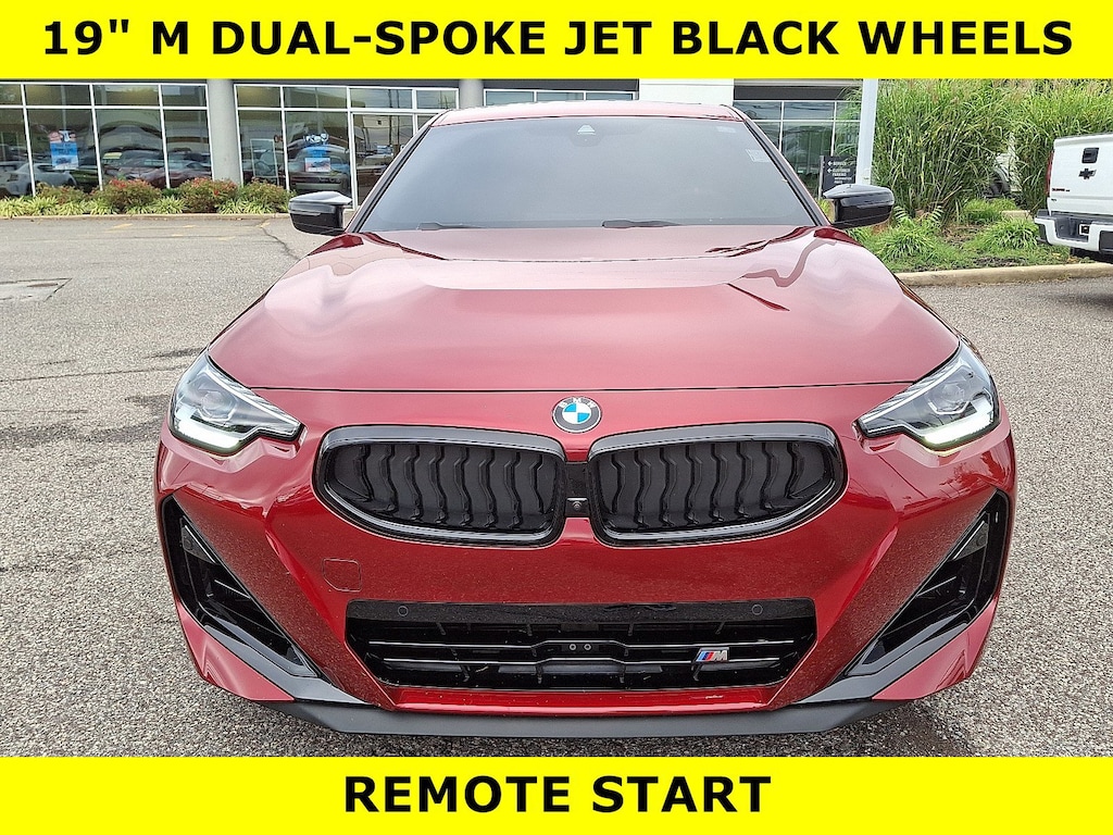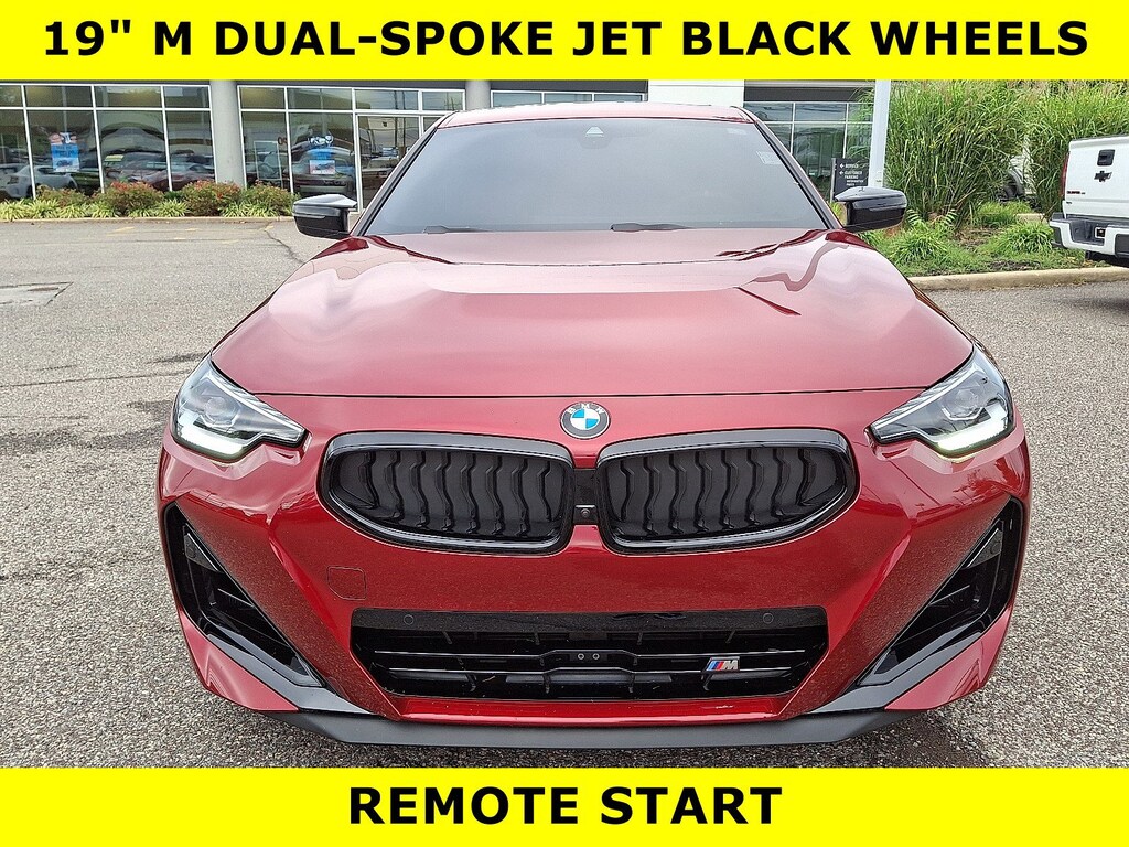This BMW M240I X Drive has a dependable Intercooled Turbo Premium Unleaded I-6 3.0 L/183 engine powering this Automatic transmission. WHEELS: 19 X 8 M DUAL-SPOKE JET BLACK -inc: Style 995M, VEGAS RED METALLIC, REMOTE ENGINE START, PARKING ASSISTANCE PACKAGE -inc: Active Park Distance Control, Drive Recorder, Surround View w/3D View, Rear View Camera, Parking Assistant Plus, HEATED STEERING WHEEL.