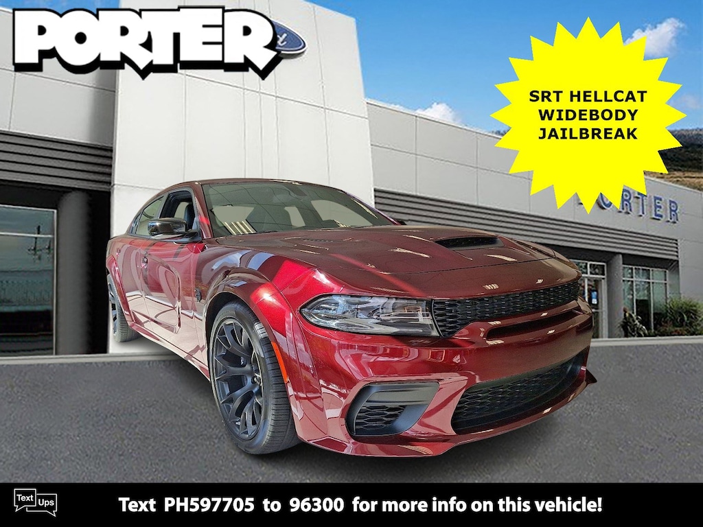 Calling all enthusiasts for this sexy and powerful 2023 Dodge Charger SRT Hellcat Widebody Jailbreak. Take pleasure in the buttery smooth shifting from the Automatic transmission paired with this high performance Intercooled Supercharger Premium Unleaded V-8 6.2 L/376 engine. Delivering a breathtaking amount of torque, this vehicle needs a serious driver! It's outfitted with the following options: TRANSMISSION: 8-SPEED AUTOMATIC (HP90) (STD), TIRES: 305/35ZR20 (107Y) AS PERFORMANCE (STD), SUEDE HEADLINER, QUICK ORDER PACKAGE 23B SRT HELLCAT WIDEBODY JAILBREAK -inc: Engine: 6.2L Supercharged HEMI V8 SRT, Transmission: 8-Speed Automatic (HP90), Bright Charger Badge, Dual Bright Exhaust Tips, Black Seat Belts, Jailbreak IP Badge, POWER SUNROOF, OCTANE RED PEARLCOAT, HARMAN/KARDON AUDIO GROUP -inc: 19 harman/kardon GreenEdge Speakers, Surround Sound, harman/kardon GreenEdge Amp, ENGINE: 6.2L SUPERCHARGED HEMI V8 SRT (STD), BRAKE CALIPERS - BLACK, and BLACK, HELLCAT LOGO LAGUNA LEATHER SEAT. Cruise for miles in this lively and fun-loving Dodge Charger. You've earned this - stop by Porter Ford located at 600 Ogletown Rd, Newark, DE 19711 to make this car yours today! No haggle, no hassle.