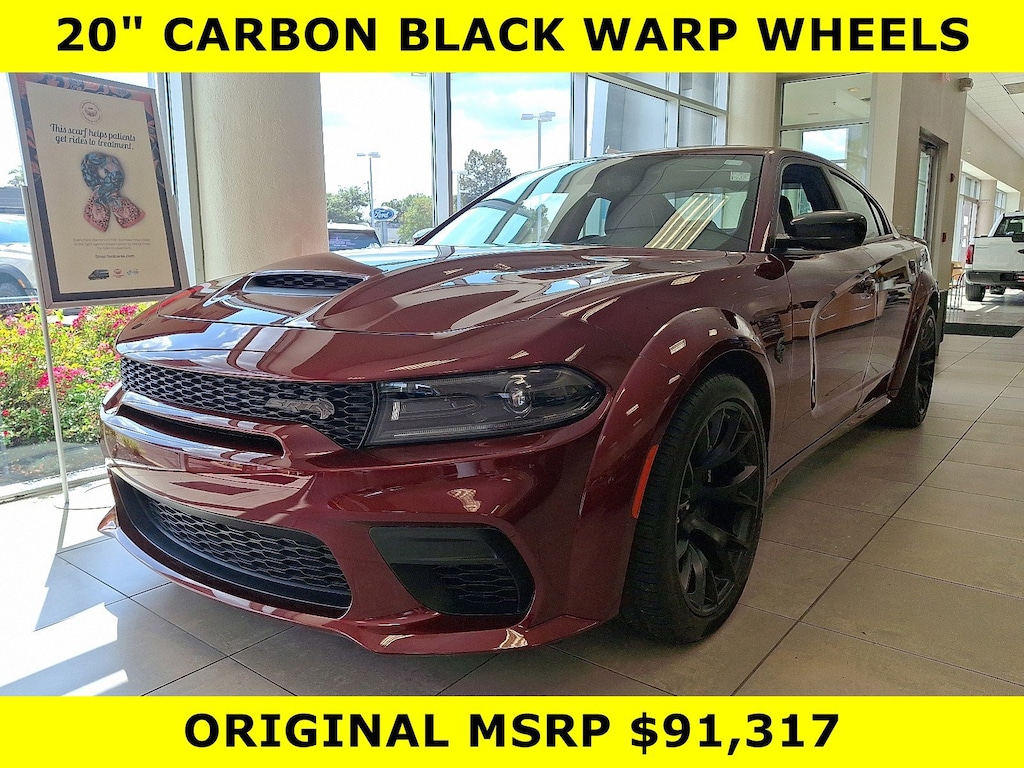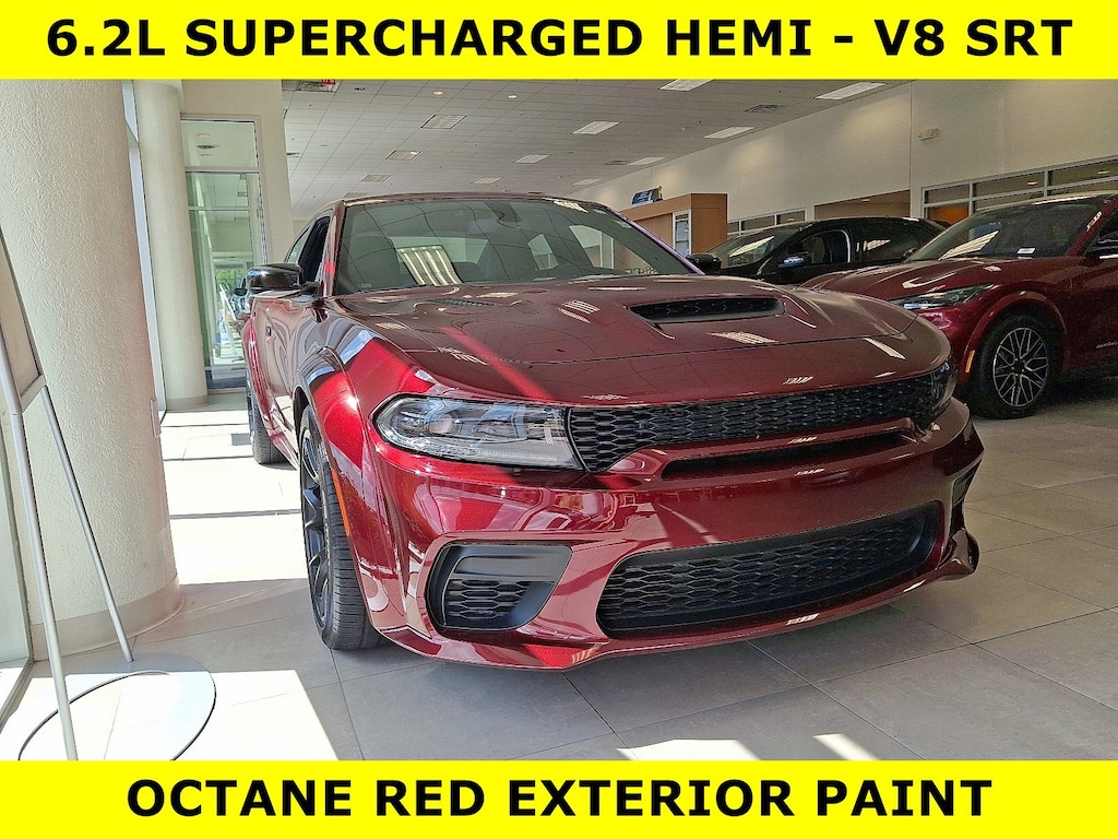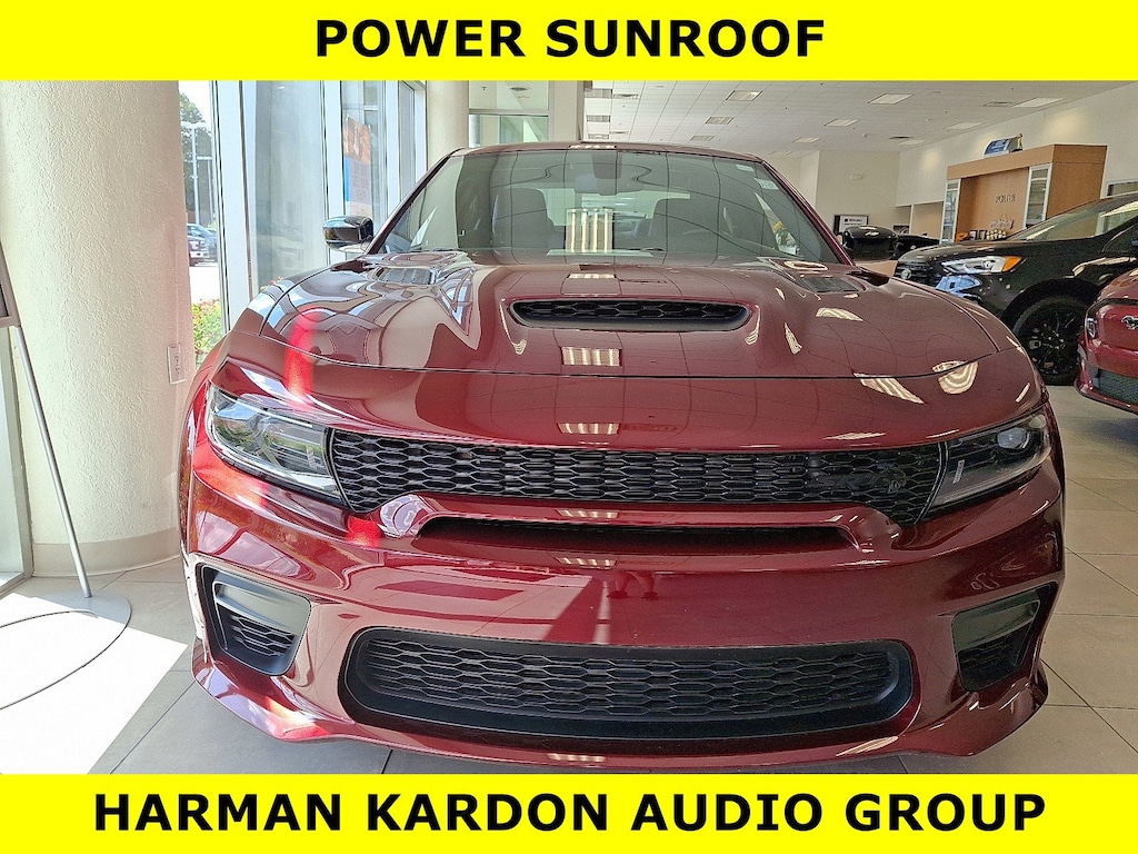 • TIRES: 305/35ZR20 (107Y) AS PERFORMANCE (STD),POWER SUNROOF,OCTANE RED PEARLCOAT,QUICK ORDER PACKAGE 23B SRT HELLCAT WIDEBODY JAILBREAK -inc: Engine: 6.2L Supercharged HEMI V8 SRT Transmission: 8-Speed Automatic (HP90) Bright Charger Badge Dual Bright Exhaust Tips Black Seat Belts Jailbreak IP Badge,WHEELS: 20 X 11 CARBON BLACK WARP SPEED,SUEDE HEADLINER,ENGINE: 6.2L SUPERCHARGED HEMI V8 SRT (STD),BRAKE CALIPERS - BLACK,BLACK CHARGER EXHAUST TIPS,HARMAN/KARDON AUDIO GROUP -inc: 19 harman/kardon GreenEdge Speakers Surround Sound harman/kardon GreenEdge Amp,BLACK EXTERIOR BADGING -inc: SRT Grille Badge Midnight Metallic SRT Decklid Badge 2-Piece Redeye Fender Badge,TRANSMISSION: 8-SPEED AUTOMATIC (HP90) (STD),BLACK HELLCAT LOGO LAGUNA LEATHER SEAT,Supercharged,Rear Wheel Drive,Power Steering,ABS,4-Wheel Disc Brakes,Brake Assist,Locking/Limited Slip Differential,Aluminum Wheels,Tires - Front Performance,Tires - Rear Performance,Heated Mirrors,Power Mirror(s),Rear Defrost,Intermittent Wipers,Variable Speed Intermittent Wipers,Rear Spoiler,Daytime Running Lights,Automatic Headlights,LED Headlights,AM/FM Stereo,Satellite Radio,MP3 Capability,Auxiliary Audio Input,HD Radio,Requires Subscription,Premium Sound System,Steering Wheel Audio Controls,Premium Sound System,Satellite Radio,HD Radio,Requires Subscription,Satellite Radio,HD Radio,Requires Subscription,MP3 Capability,Auxiliary Audio Input,Power Driver Seat,Power Passenger Seat,Bucket Seats,Driver Adjustable Lumbar,Heated Front Seat(s),Cooled Front Seat(s),Heated Front Seat(s),Mirror Memory,Seat Memory,Power Driver Seat,Driver Adjustable Lumbar,Power Passenger Seat,Passenger Adjustable Lumbar,Pass-Through Rear Seat,Heated Rear Seat(s),Rear Bench Seat,Adjustable Steering Wheel,Trip Computer,Power Windows,Leather Steering Wheel,Heated Steering Wheel,Keyless Entry,Power Door Locks,Keyless Start,Keyless Entry,Power Door Locks,Remote Trunk Release,Universal Garage Door Opener,Cruise Control,Climate Control,Multi-Zone A/C,A/C,Leather Seats,Driver Vanity Mirror,Passenger Vanity Mirror,Driver Illuminated Vanity Mirror,Passenger Illuminated Visor Mirror,Auto-Dimming Rearview Mirror,Floor Mats,Remote Engine Start,Keyless Start,Remote Engine Start,Smart Device Integration,Requires Subscription,Smart Device Integration,MP3 Capability,Smart Device Integration,Telematics,Smart Device Integration,Requires Subscription,WiFi Hotspot,Bluetooth Connection,Power Windows,Power Door Locks,Trip Computer,Immobilizer,Security System,Traction Control,Stability Control,Traction Control,Front Side Air Bag,Rear Parking Aid,Blind Spot Monitor,Cross-Traffic Alert,Tire Pressure Monitor,Driver Air Bag,Passenger Air Bag,Front Head Air Bag,Rear Head Air Bag,Passenger Air Bag Sensor,Knee Air Bag,Child Safety Locks,Back-Up Camera