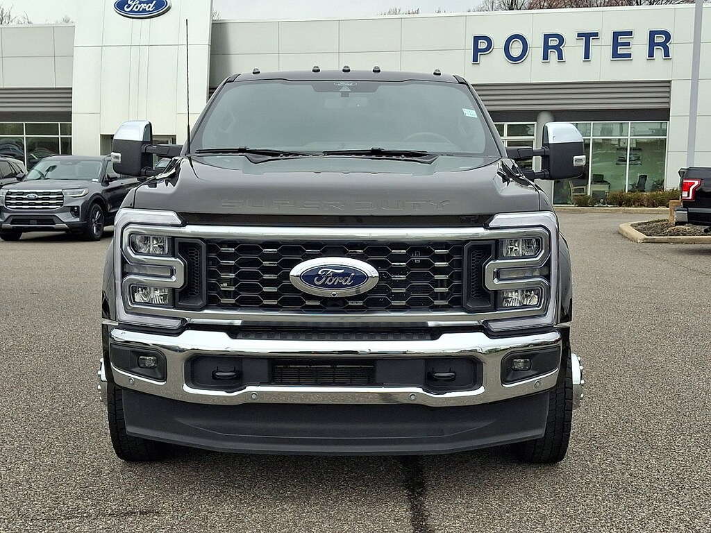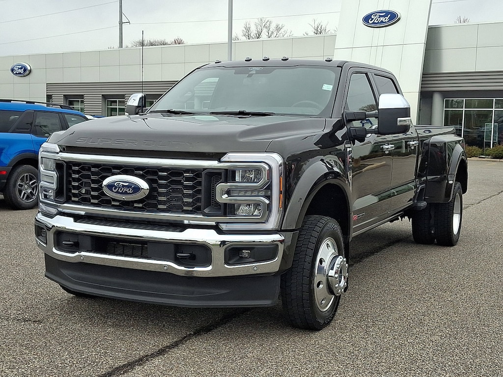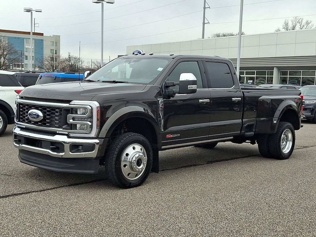This Ford Super Duty F-450 DRW Crew Cab King Ranch has a strong Intercooled Turbo Diesel V-8 6.7 L/406 engine powering this Automatic transmission. Dealer Certified Pre-Owned. TWIN PANEL POWER MOONROOF -inc: map lights and moonroof switches, TOUGH BED SPRAY-IN BEDLINER -inc: tailgate-guard, black box bed tie-down hooks and black bed attachment bolts, MAX RECLINE SEATS -inc: 10-way power driver and 8-way power passenger and 4-way headrests.